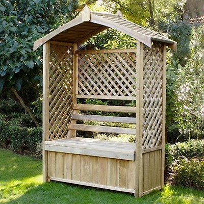 The arbour is varnished with a rich finish. A & l furniture lexington 7 ft. The arbour is designed with diamond trellis cutwork and has a storage box to store garden essentials and equipment. Also available as garden arbour seats in a range of shapes, materials (e.g. 4 seat boat shaped garden set.