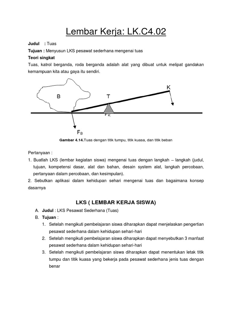 Sistem kerja tuas terdiri atas tiga bagian, yaitu beban, titik tumpu, dan kuasa. Coba perhatikan gambar di atas. Pesawat sederhana adalah peralatan yang bisa memudahkan pekerjaan manusia. Add to my workbooks (0) download file pdf embed in my website or blog add to google classroom add to microsoft teams Pada tuas, terdapat beberapa istilah penting yang bisa kamu ketahui nih, di antaranya: